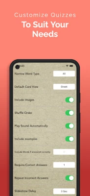 Tailor quizzes to your needs, including as much or as little of the extra content as you want. Or sit back and study in slideshow mode, even while driving! Either way, you'll be acing those vocab tests in no time.